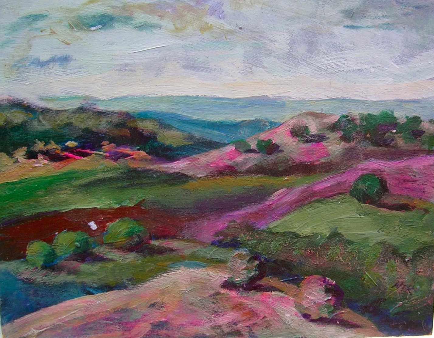 Even in this formative piece, there is a playful stylization of the natural world. The landscape feels imagined as much as observed, a space where color and form are heightened to evoke mood rather than strict realism.